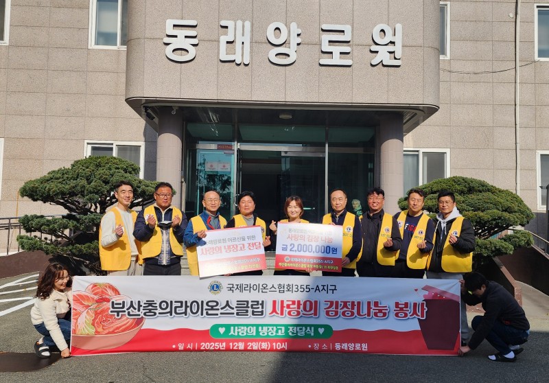 부산충의라이온스클럽(회장 이동철L)은 지난 12월 2일(화) 오전 10시, 동래양로원을 방문하여 어르신들을 위한 “사랑의 김장나눔 봉사활동”을 진행하였습니다.