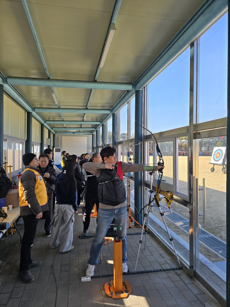장애인양궁협회 후원 및 시력 장애를 가진 아동을 보조하여 활을 쏠수 있게 도움을 주었습니다.